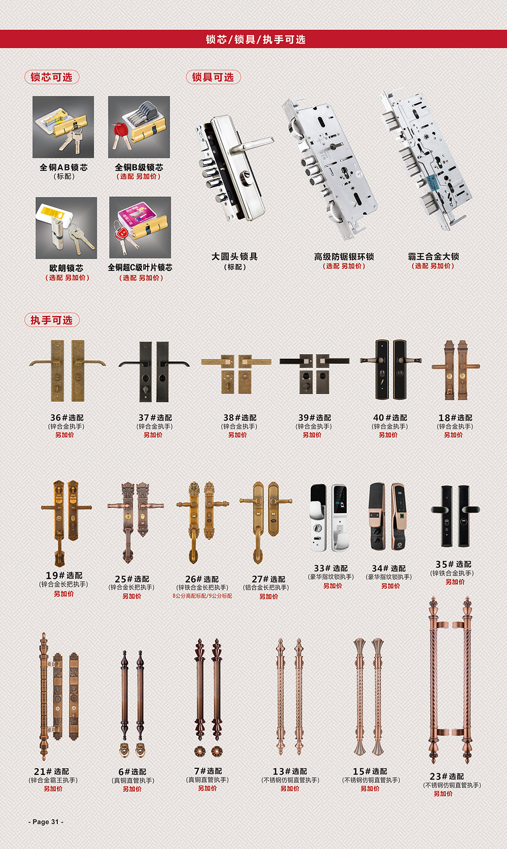 可选配件(锁芯/锁具/执手可选)